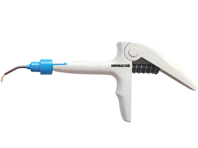 NovaBone® Dental Putty is available in multiple delivery options: trays, pre-filled syringes, and a unique industry-first cartridge delivery system. NovaBone® is the only graft material in the world that is available in disposable uni-dose cartridges. The cartridges simplify dispensing of the graft, especially in hard-to-reach areas, thus facilitating minimally invasive techniques (and hard-to-access defects such as gaps in immediate implant placement and crestal-approach sinus lifts). Cartridges are available in various sizes and are used in conjunction with NovaBone's® cartridge delivery system; each cartridge holds 0.25 cc's or 0.5 cc’s of putty.