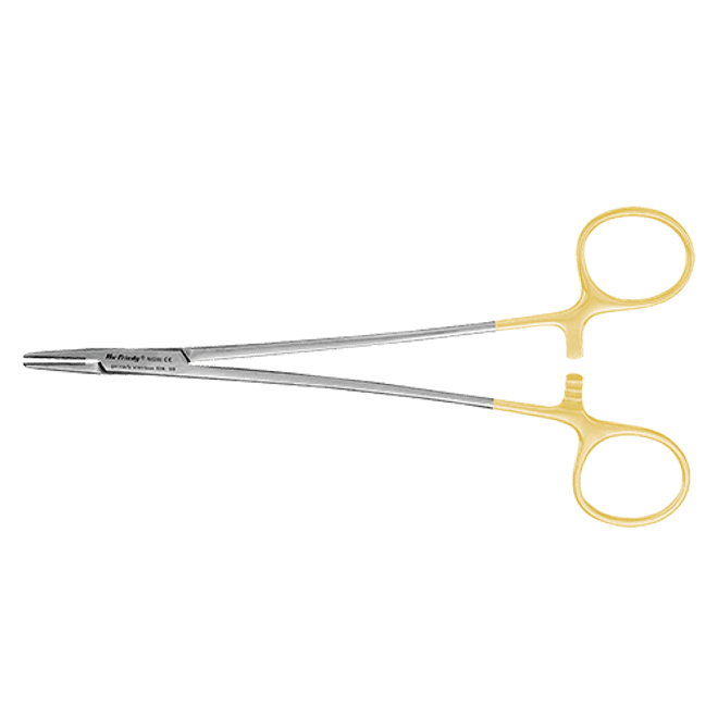 Hu-Freidy Perma Sharp® needle holders feature tungsten carbide inserts with a matched diamond-cut pyramidcal profile for enhanced longevity, a secure, positive suture needle grasp and reduced risk of cutting the suture material. With a precision designed hinge, the smooth surface reduces the risk of catching and or cutting the suture material during the knot tying process, enhancing clinical efficiencies. For optimal grip and control, Hu-Friedy offers a variety of design options, including standard, finger, and palm control closure.