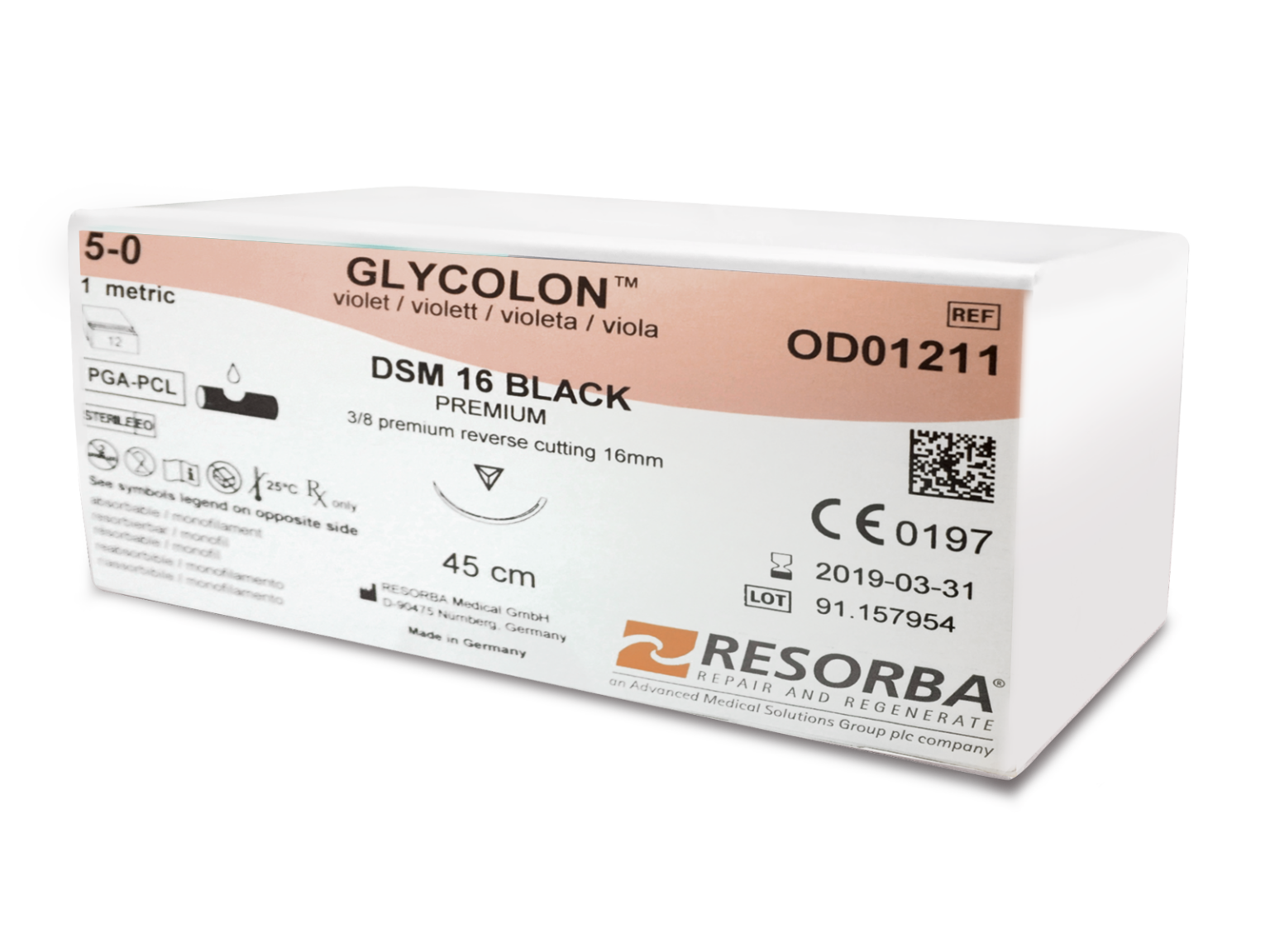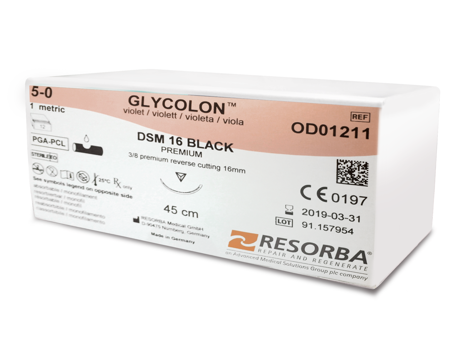 Glycolon™ is Resorba’s® top selling suture material world-wide and is made of polyglycolic acid (PGA) and polycaprolactone (PCL). The monofilament structure provides excellent handling properties, does not wick bacteria, and allows for atraumatic passage through the tissue. Glycolon™ maintains 50% of its tensile strength for 11-13 days*.