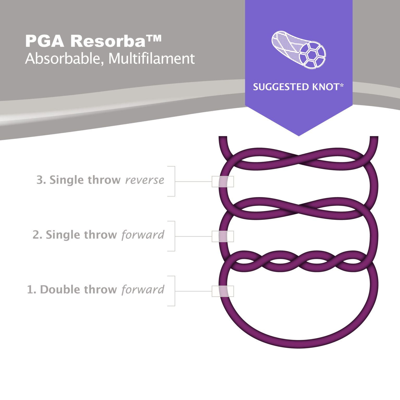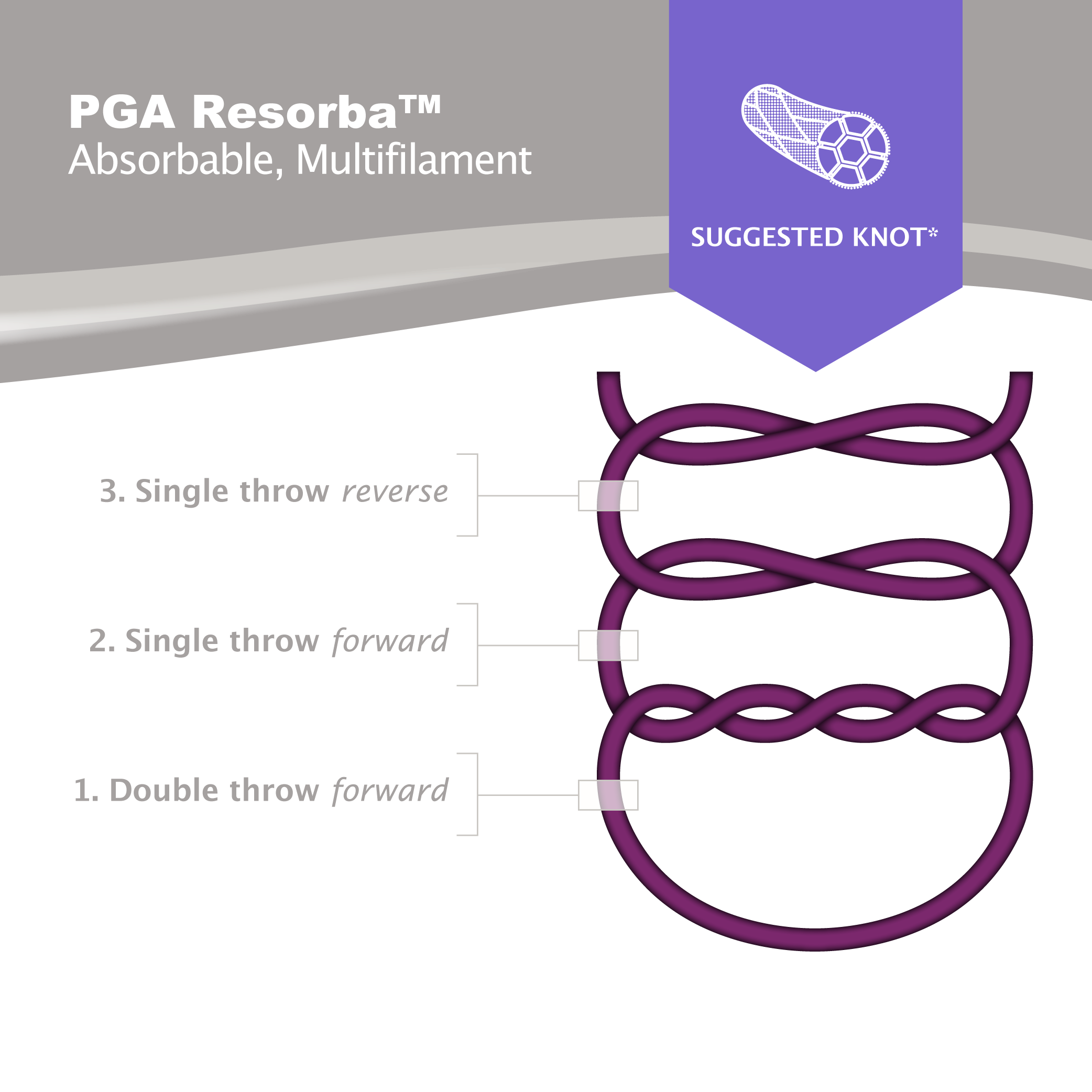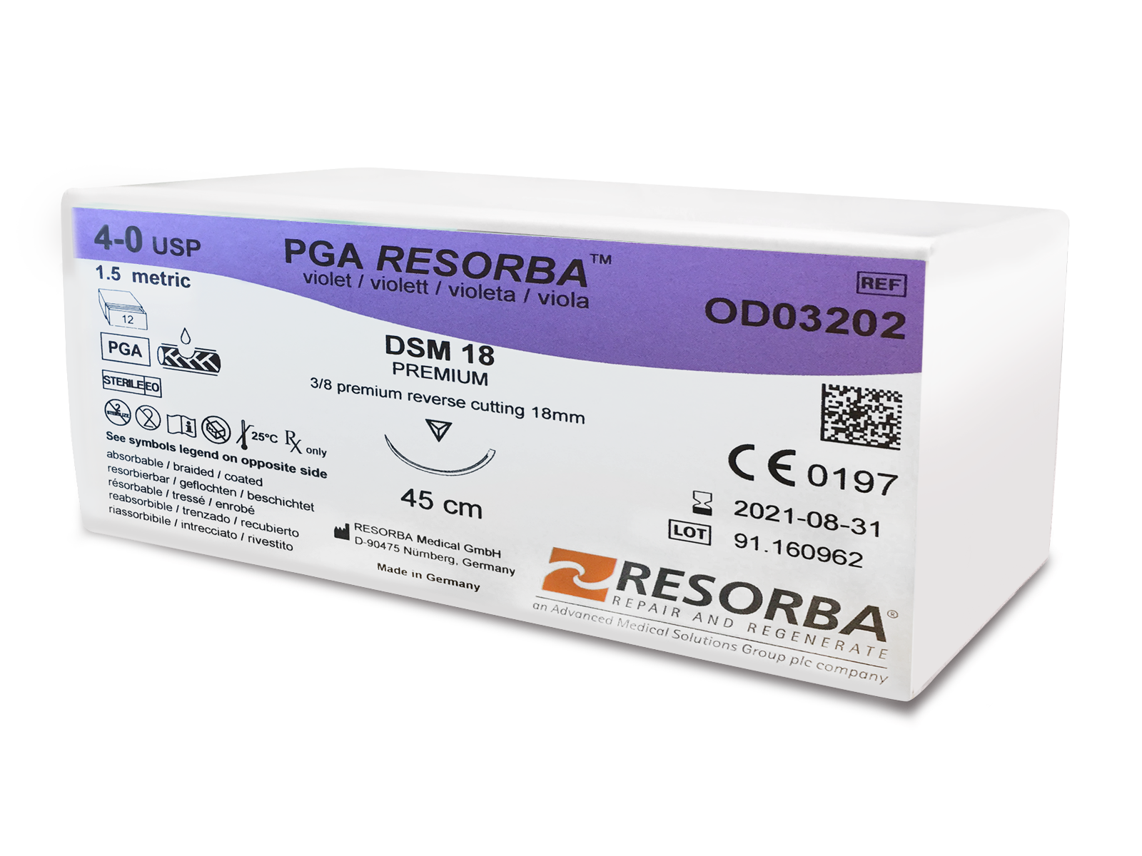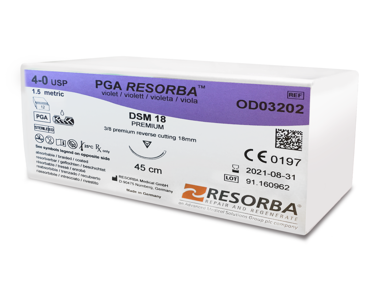 PGA Resorba™ is an absorbable suture made of precision-braided filaments of polyglycolic acid coated with a special resolactone coating to reduce surface friction when passing through tissue. The composition of PGA Resorba™ ensures predictable and moderately rapid resorption in tissue. PGA Resorba™ maintains 50% tensile strength for up to 21 days*.