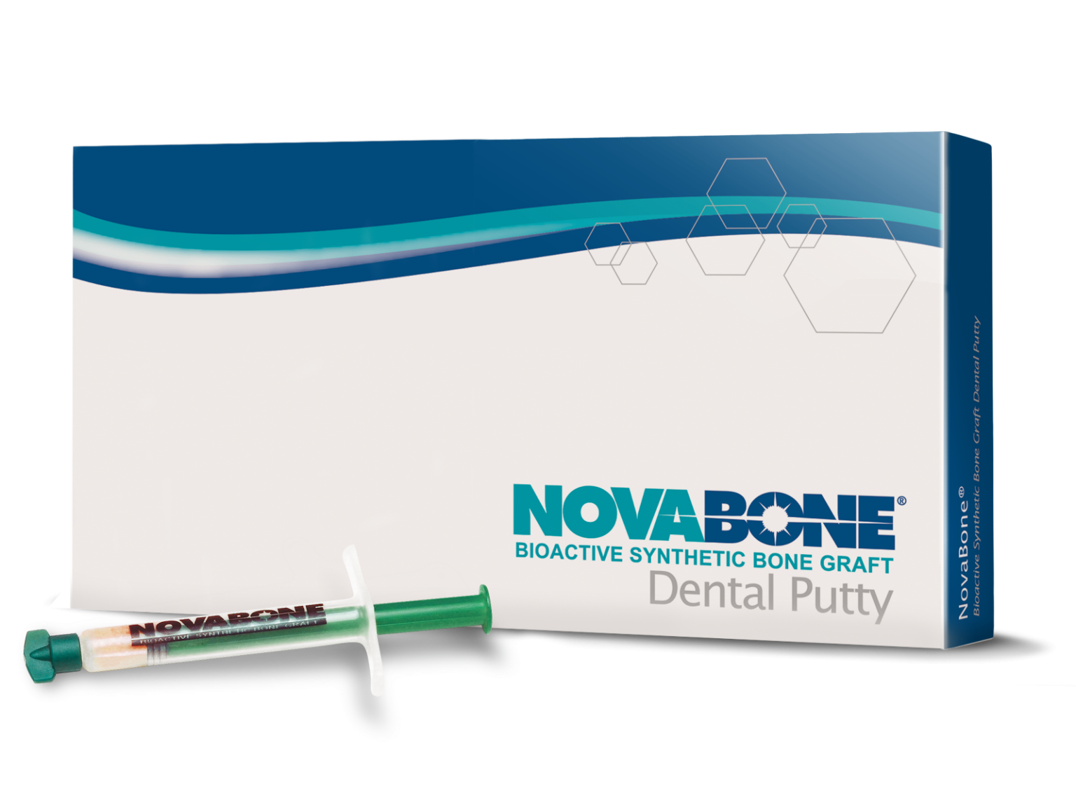 NovaBone® Dental Putty significantly simplifies bone graft handling and delivery. It is ready to use and extremely user friendly. It is pre-mixed, cohesive, moldable, and adaptable. NovaBone® Dental Putty is stable at room temperature, does not require refrigeration, has a 4-year shelf-life, and appears radiodense on radiographs.