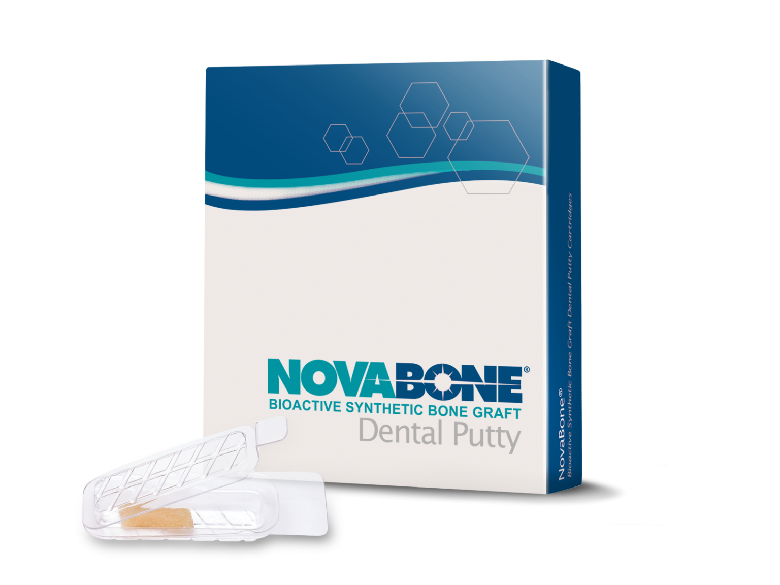 NovaBone® Dental Putty significantly simplifies bone graft handling and delivery. It is ready to use and extremely user friendly. It is pre-mixed, cohesive, moldable, and adaptable. NovaBone® Dental Putty is stable at room temperature, does not require refrigeration, has a 4-year shelf-life, and appears radiodense on radiographs.