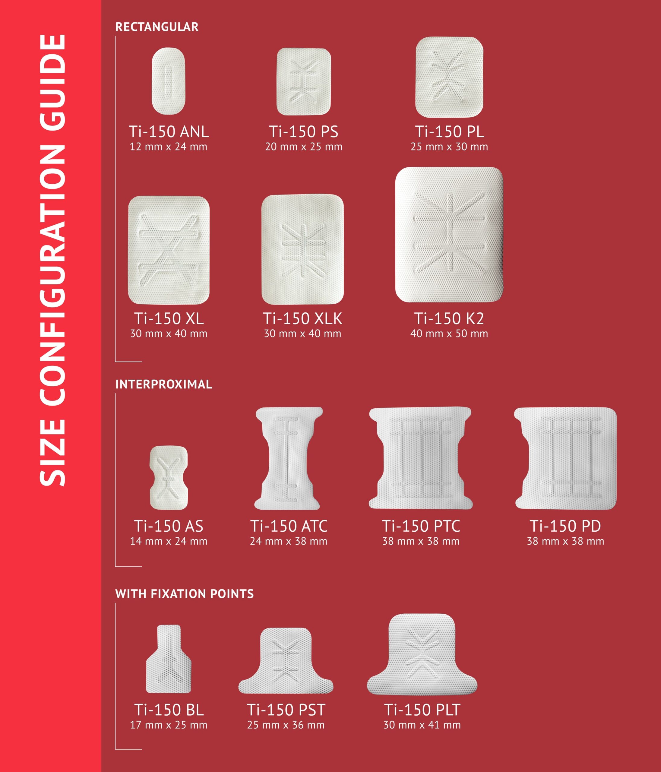 Ti-150 membranes are 40% thinner than Ti-250 membranes, providing clinicians another handling option in Cytoplast™ Titanium-Reinforced Membranes.