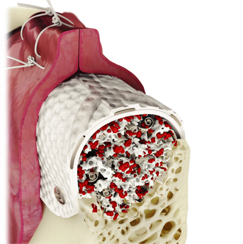 Often used with on-lay grafting in ridge augmentation procedures, Cytoplast™ Ti-150 titanium-reinforced membranes provide clinicians with the predictability they are accustomed to with the Cytoplast™ TXT-200 membranes, along with the added benefit of a titanium frame to maintain space during guided bone regeneration. These membranes are also popular for adding structural support when grafting 3 or 4-walled extraction sites.