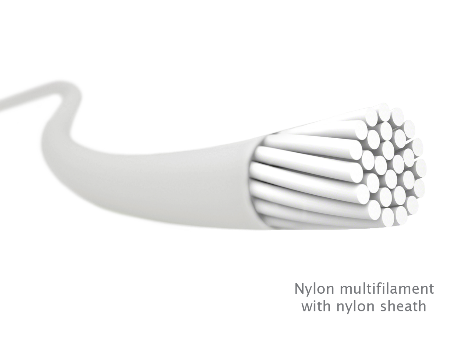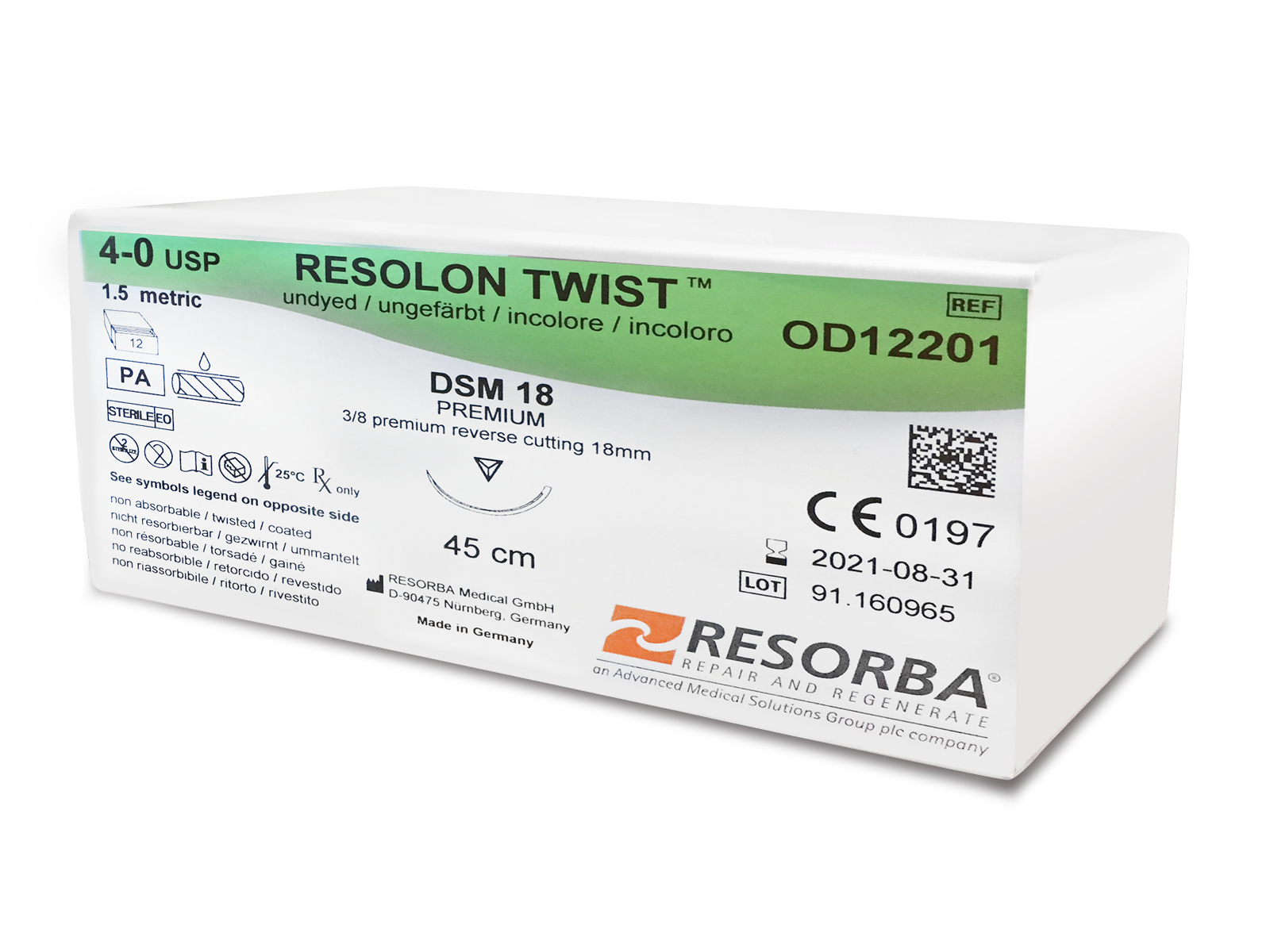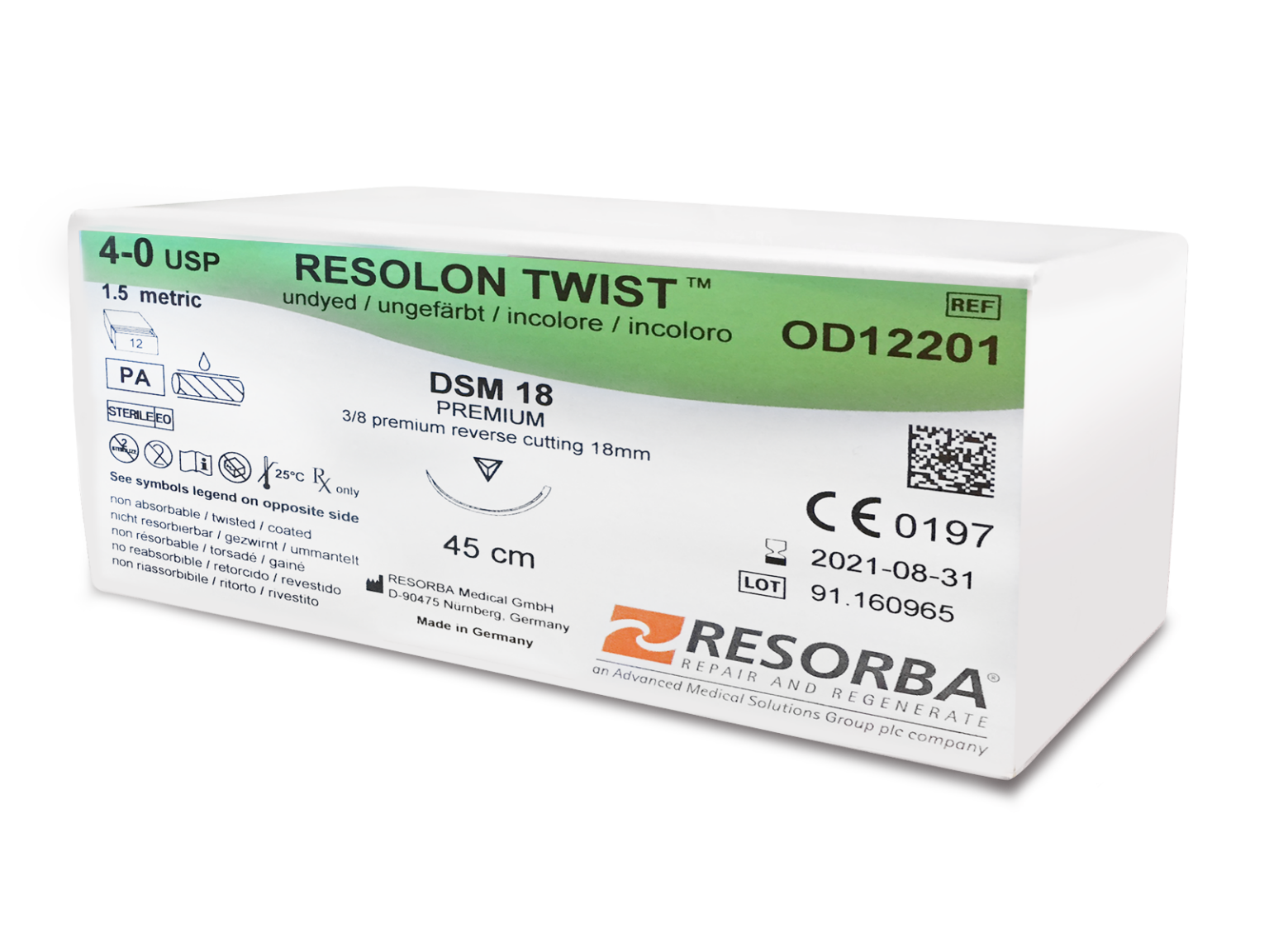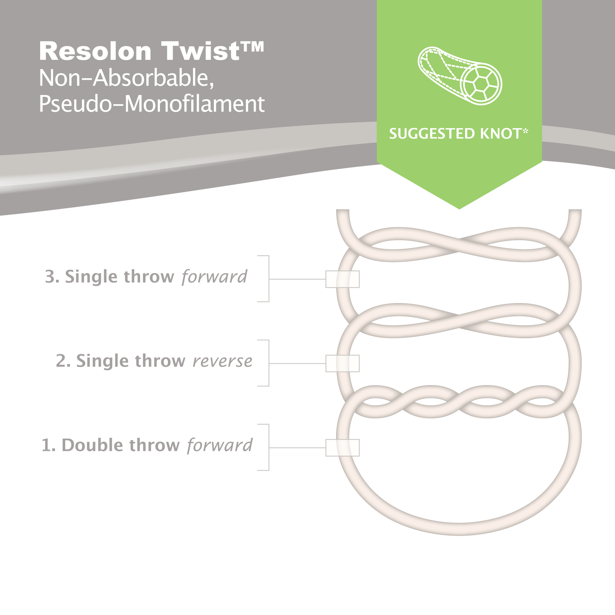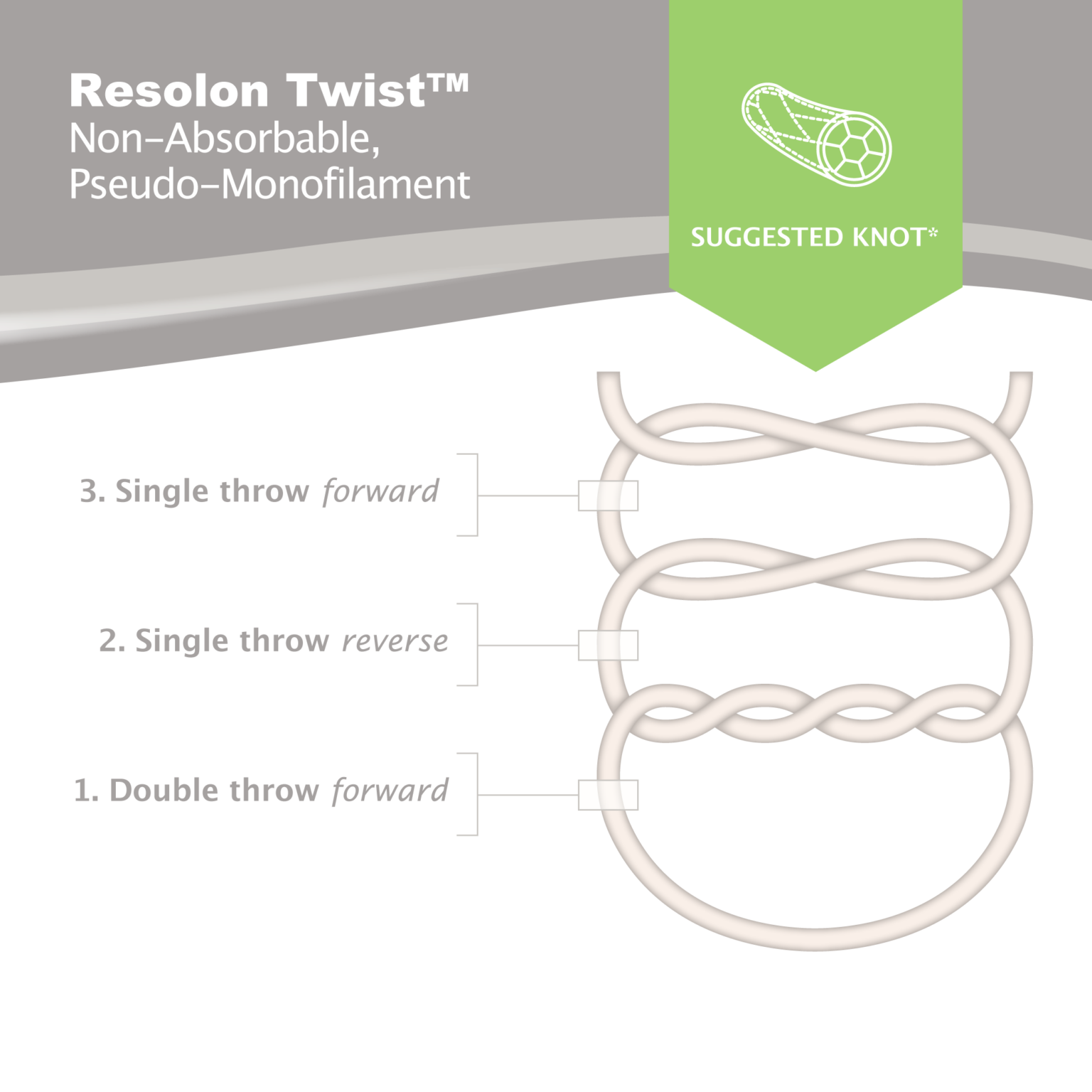 Resolon Twist™ is a pseudo-monofilament made of braided nylon fibers that are covered with a nylon sheath. The pseudo-monofilament design offers clinicians a non-absorbable suture that handles similarly to a multifilament suture, but has the advantage of reduced drag when being pulled through soft tissue.
