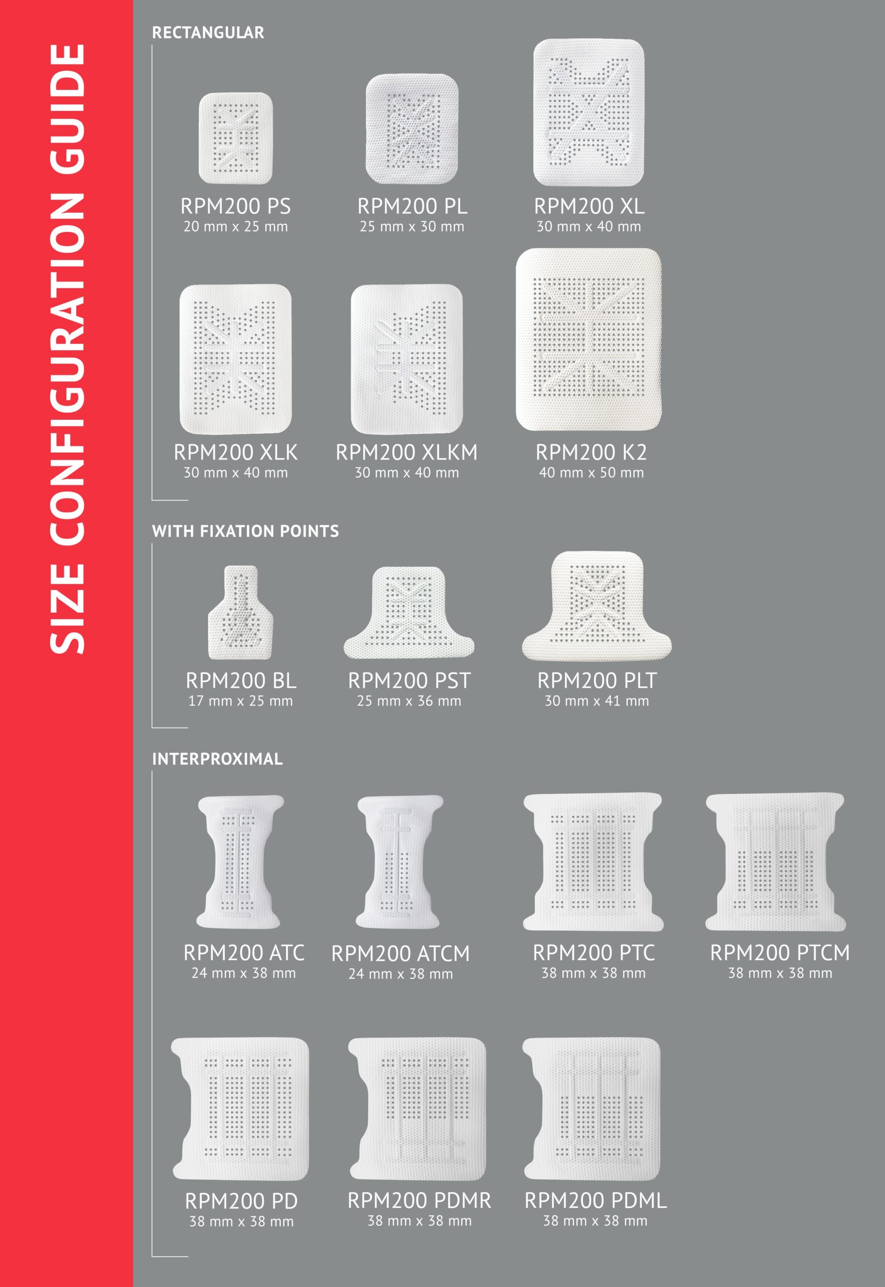 RPM is designed to work like traditional titanium mesh, but with the added benefits of easier trimming and easier adaptation. The hole patterns on each configuration are designed to make removal easier. RPM should only be used when primary closure can be achieved and maintained throughout the entire healing period.
