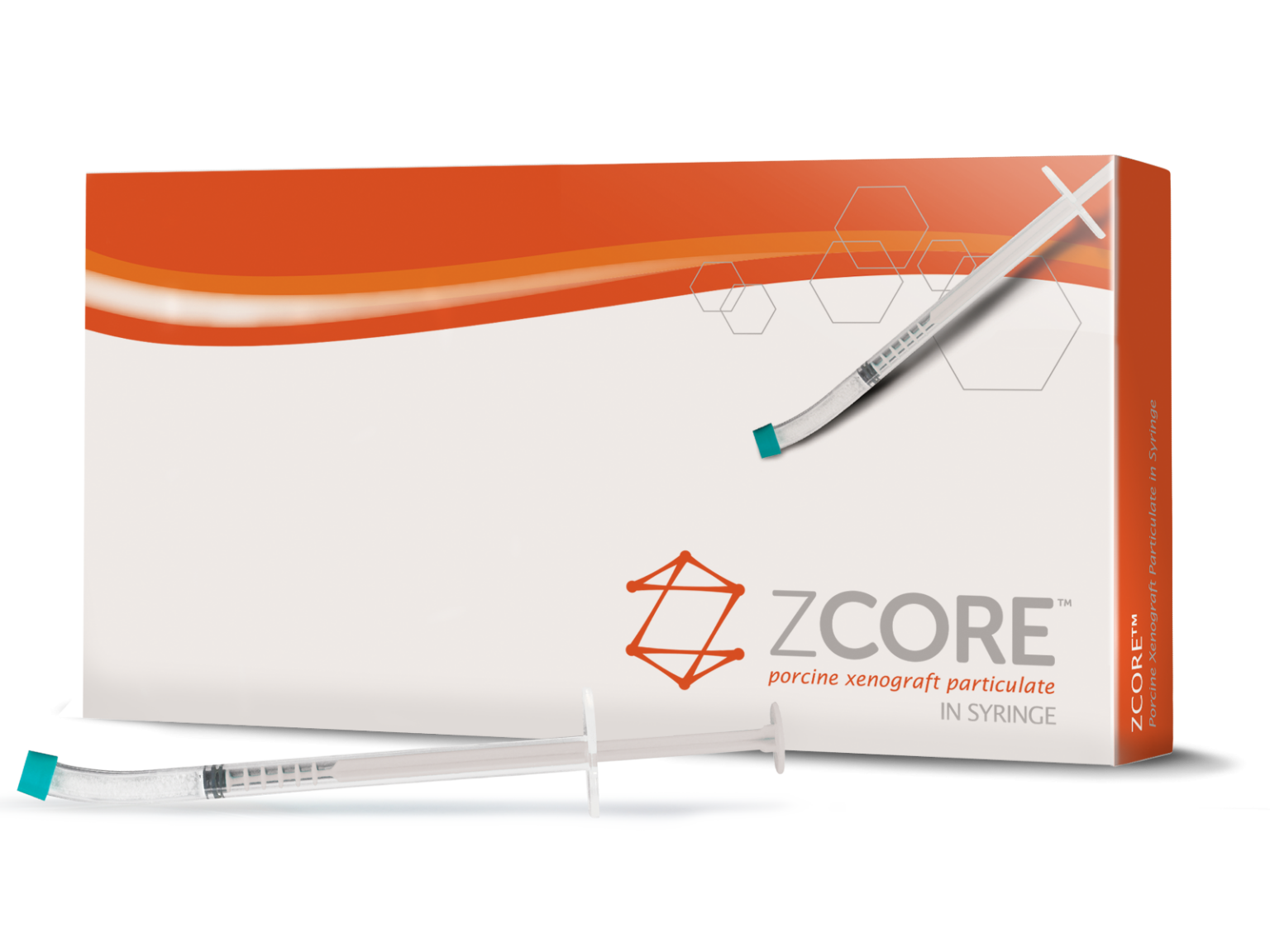 Zcore™ is an osteoconductive, porous, anorganic bone mineral with a carbonate apatite structure derived from porcine cancellous bone. Proprietary processing steps preserve both interconnecting macroscopic and microscopic porous structures of Zcore™ that helps support the formation and in-growth of new bone.