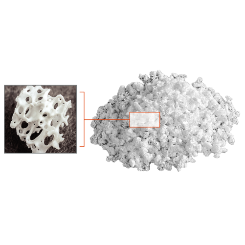 • 88% to 95% Void Space: hyper-porosity of porcine cancellous matrix and intra-particle space facilitated by rough particle morphology reduce bulk density of the graft, allowing greater empty space for new bone growth