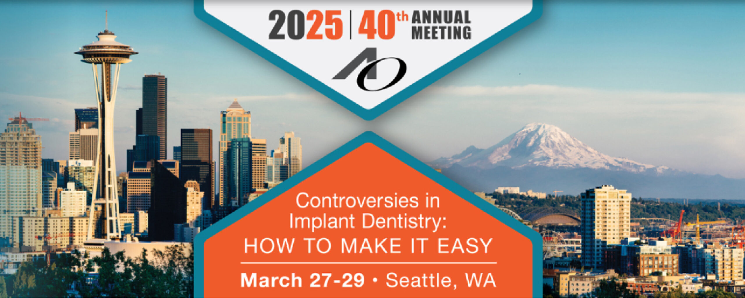 We invite you to join us in March 27-29 as we bring together the foremost researchers, scientists and clinicians to discuss the latest innovations in implant dentistry. AO is committed to providing our attendees with multi-disciplinary research and presentations that provides them with practical takeaways that can be quickly implemented into their practices to improve patient care. Learn, discuss, and share insights among diversified delegates from around the world as we gather in the “Emerald City” Seattle.