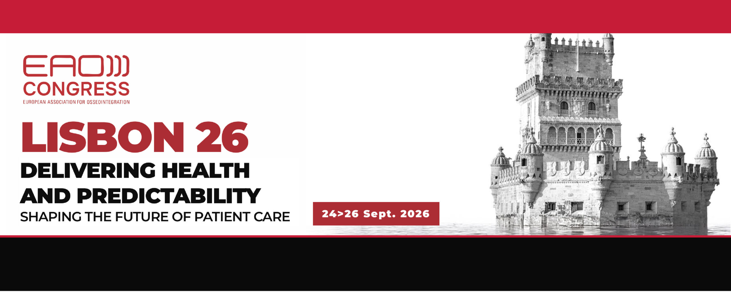 The European Association for Osseointegration is delighted to announce that its 33rd annual congress will take place in Lisbon from 24 to 26 September 2026. The theme will be ‘Delivering Health and Predictability: Shaping the Future of Patient Care’.